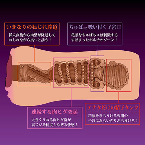 射精ポイントはイボイボを纏ったヒダと突起が蠢く子宮口とカリ首をぎっちり締め付けるイボイボ大ヒダで一気に大量射精!